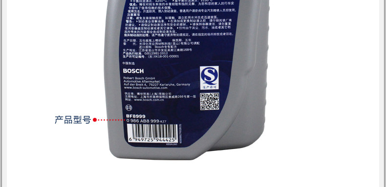 型号: 博世0986AB8999刹车油DOT4